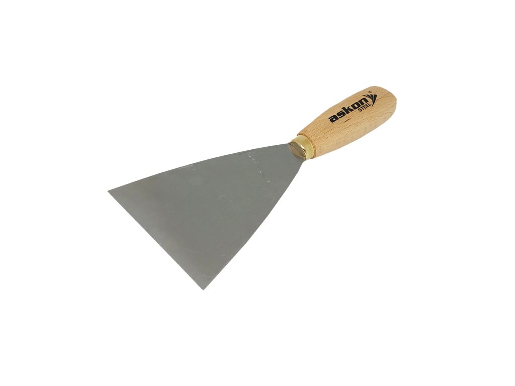 Malerspachtel ASKON aus gehärtetem Stahl mit lackiertem Holzgriff und Aufhängeloch – in Breiten von 20 bis 120 mm.