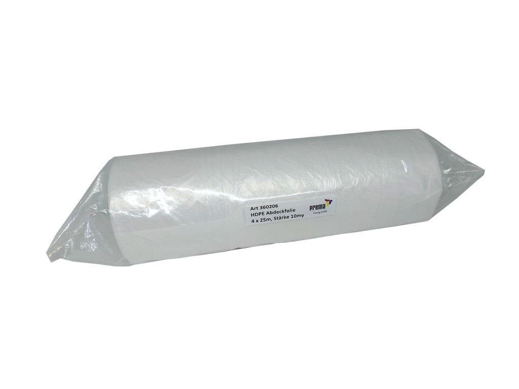 Reißfeste und leichte HDPE‑Abdeckfolie, bestehend aus hoch­dichtem Polyethylen (5, 7, 10 µm), transparent und optimal für sauberen Schutz bei Maler‑ und Renovierungsarbeiten.