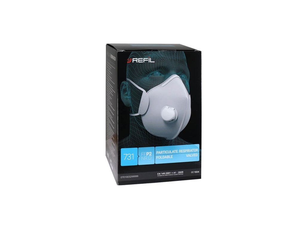 Die REFIL FFP2 Atemschutzmaske mit Ventil ist gemäß EN 149:2001+A1:2009 zertifiziert und schützt effektiv vor festen und flüssigen Aerosolen bis zum 12-fachen des gültigen Grenzwerts. Das integrierte Ausatemventil sorgt für eine bessere Luftzirkulation und reduziert den Atemwiderstand, was besonders bei körperlich anstrengenden Tätigkeiten von Vorteil ist. Die Kopfbandschlaufe ermöglicht eine sichere Befestigung hinter dem Kopf, während der flexible Nasenbügel für einen optimalen Sitz sorgt.