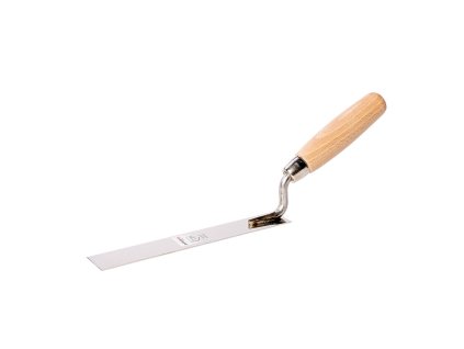 Rostfreie Berliner Stecherkelle mit 0,7 mm starkem Blatt und Holzgriff, ideal zum Einputzen in Tür‑, Fensterrahmen und Treppenabsätzen. Lieferbar in Breiten 30 mm oder 40 mm....