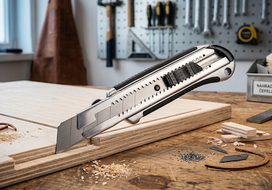 Ein gewöhnliches Cuttermesser aus dem Schreibwarenladen hat im Profi-Betrieb nichts zu suchen. Professionelle Schneidwerkzeuge sind so konzipiert, dass das Risiko eines Abrutschens minimiert wird.