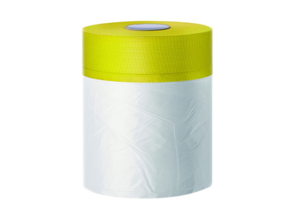 Anwendungsbeispiele: ermöglicht das großflächige Abdecken und randscharfe Abkleben in nur einem Arbeitsgang, zum Abdecken von Fußleisten, Türen, Fenstern etc., Folie schützt den Untergrund vor Staub und Farbe, für raue Untergründe geeignet