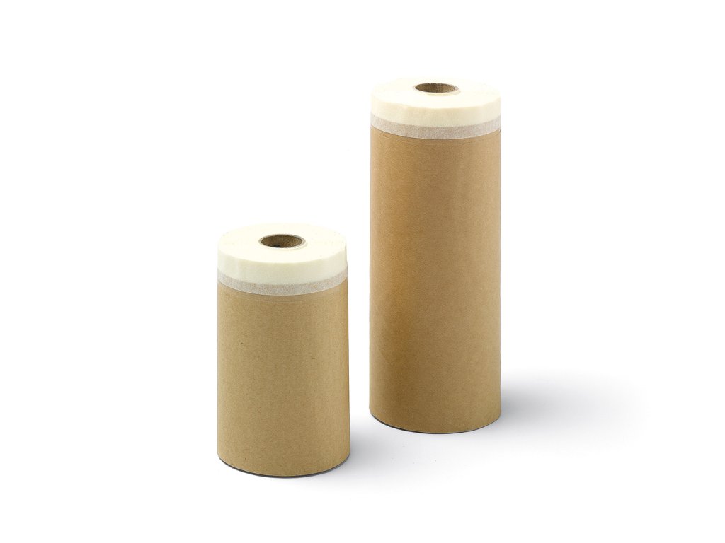 Abdeckmasker bestückt mit Papierklebeband und transparenter HDPE-Folie, in Breiten von 30–270 cm, 20 m Länge, ideal für präzises Abdecken bei Maler- und Renovierungsarbeiten....