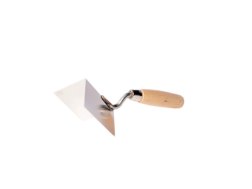 Die Eckenkelle 80 × 60 × 60 mm ist ein hochwertiges Profiwerkzeug für exakt geformte Ecken bei Spachtel- und Putzarbeiten – innen wie außen. Das rostfreie Edelstahlblatt mit einer Stärke von etwa 0,7 mm bietet die perfekte Balance zwischen Flexibilität und Stabilität. Der Holzgriff sorgt für sichere Handhabung und ein angenehmes Griffgefühl – auch bei längerer Nutzung.