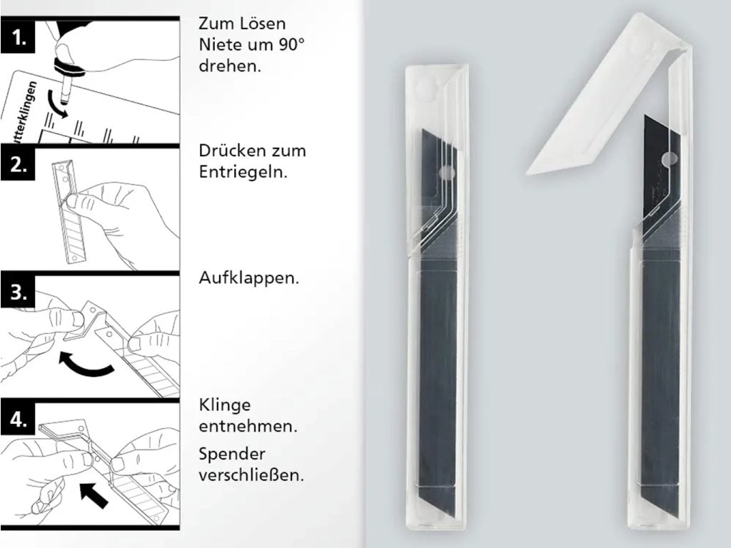 - SICHERHEITS-SPENDER: Die LUTZ Cuttermesser Profi Klingen sind in einem praktischen 10er Dispensern verpackt. Für die einfache Entnahme und sichere Lagerung der Cuttermesser Klingen.