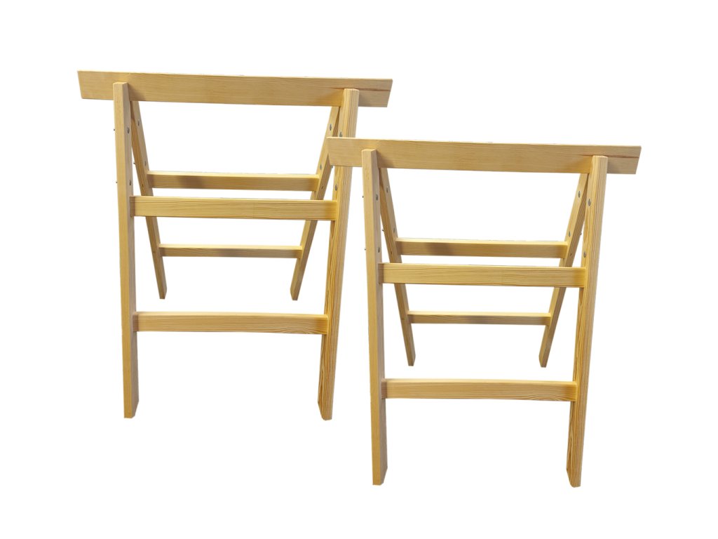 Diese Arbeitsböcke eignen sich hervorragend für Handwerk, Renovierung und Ausbau, besonders dort, wo stabile Ablageflächen benötigt werden. Die Holme bestehen aus lasiertem Kiefernholz, was Witterung und Gebrauch besser standhält. Die verzinkten Beschläge und eine verstärkende Querstrebe an der unteren Sprosse sorgen für zusätzliche Stabilität und Sicherheit. Da sich die Böcke einfach zusammenklappen lassen, sind sie sowohl mobil als auch einfach zu lagern.