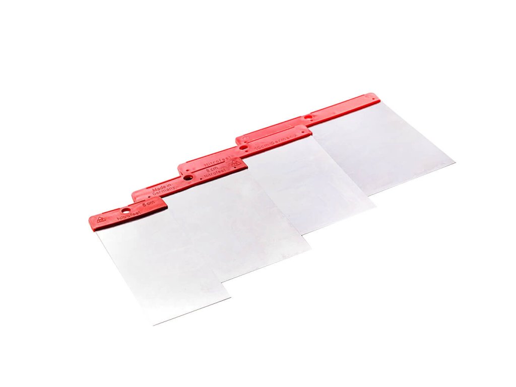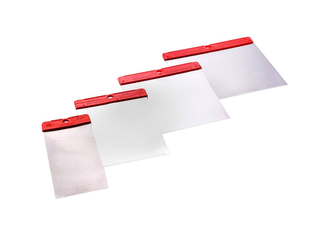 Der Japanspachtel Normalstahl verbindet Strapazierfähigkeit mit Flexibilität: Das Stahlblatt sorgt für eine stabile Arbeitsfläche, während der rückseitige, nitrofeste Kunststoffrücken das Werkzeug langlebig und formstabil macht. Erhältlich in praktischen Breiten von 25 mm, 50 mm, 80 mm, 100 mm und 120 mm, findet sich für jede Aufgabe die passende Größe. Ideal für feine Spachtelarbeiten – ob im Innenbereich oder auf empfindlichen Oberflächen. Erhältlich auch als Set mit 4 Breiten im Beutel.