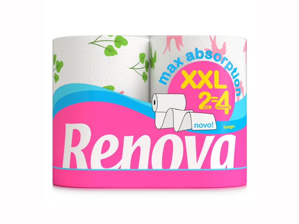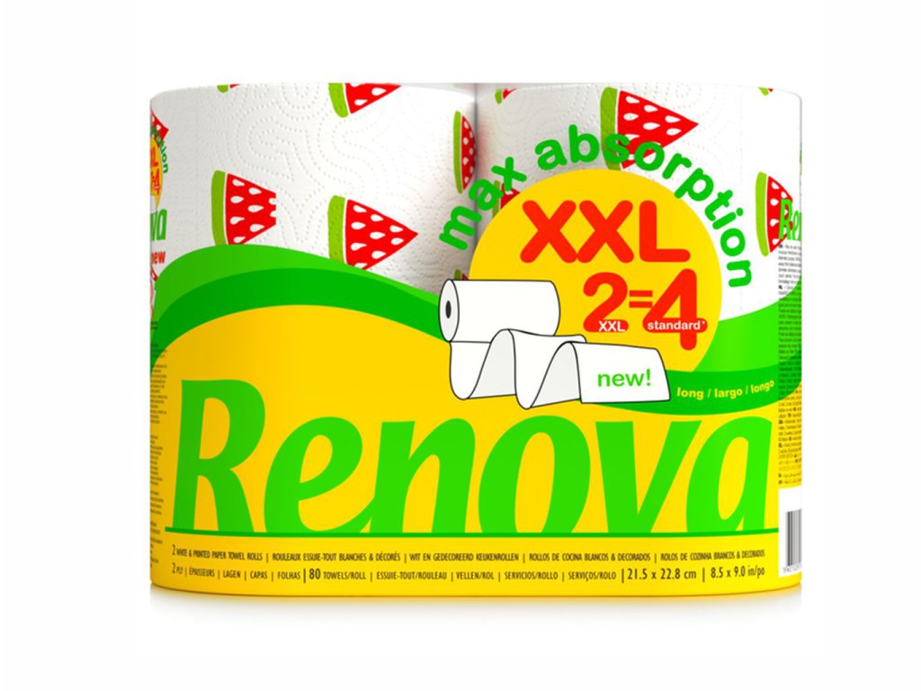 Das Renova Küchenpapier 2-lagig XXL – bedruckt kombiniert hohe Saugkraft mit dekorativen Motiven. Jede XXL-Rolle entspricht zwei Standardrollen und bietet 80 Blatt mit einer Blattgröße von 215 × 228 mm. Das Papier ist FSC®-zertifiziert und in verschiedenen saisonalen Designs erhältlich.