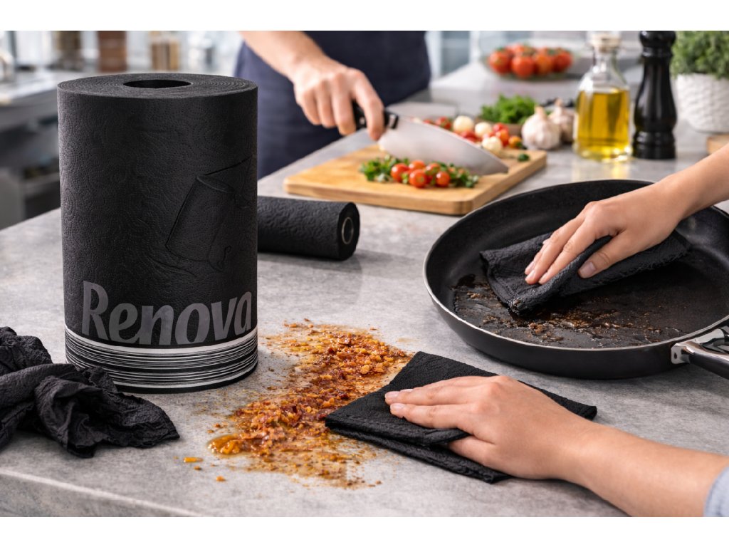 Das Renova Küchenpapier schwarz – 6x Maxi Rolle bietet eine Kombination aus Funktionalität und stilvollem Design. Die 2-lagige Struktur sorgt für hohe Saugfähigkeit und Reißfestigkeit , ideal für den täglichen Gebrauch in Küche, Büro oder Werkstatt. Mit 120 Blatt pro Rolle und einer Gesamtlänge von 28,8 m reduziert sich der Rollenwechsel. Die schwarze Farbe verleiht Ihrer Küche eine moderne Note.
