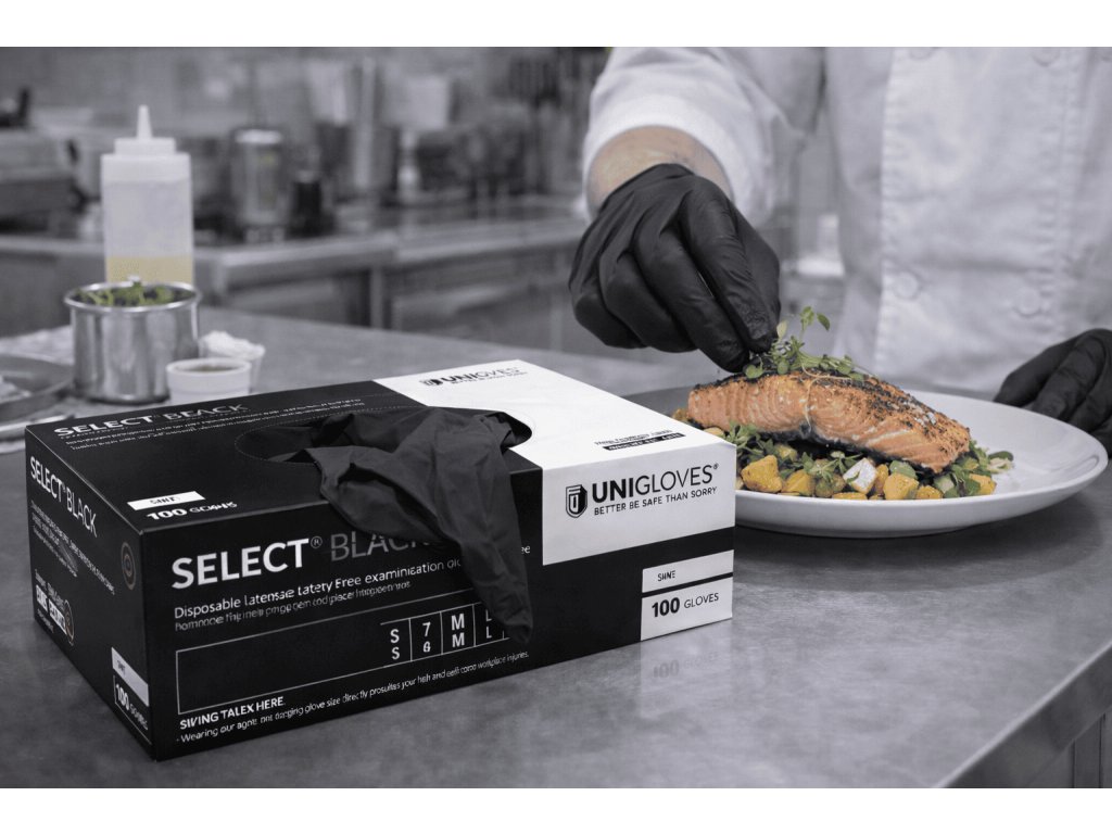 Die Unigloves Select Black sind hochwertige, puderfreie Latexhandschuhe, die speziell für professionelle Anwendungen entwickelt wurden. Hergestellt aus 100 % Naturlatex, bieten sie eine exzellente Passform und hohe Reißfestigkeit. Die mikrogerauten Handflächen und Fingerspitzen sorgen für einen sicheren Griff, selbst bei feuchten oder öligen Bedingungen. Dank der doppelten Chlorinierung sind die Handschuhe besonders hautfreundlich und lassen sich leicht an- und ausziehen. Mit einem Proteingehalt von weniger als 50 µg/dm² sind sie auch für empfindliche Haut geeignet. Die beidseitige Tragbarkeit und der Rollrand erhöhen den Anwendungskomfort. Zertifiziert nach EN 455 und EN 374, bieten sie Schutz vor Viren, Pilzen und Bakterien und sind lebensmittelecht.