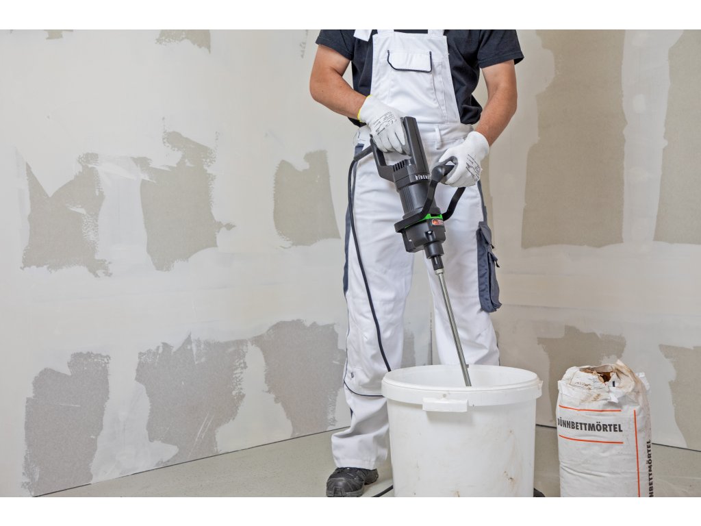 Das Rührwerk EHR 15.2 SB der Marke Eibenstock ist ein robustes, kompaktes Elektrowerkzeug für das Mischen von Baustoffen wie Farbe, Leim, Spachtel‑ und Ausgleichsmassen sowie Fliesenkleber. Die 1 050 W Motorleistung sorgt für kraftvolle Performance, während der Elektronikschalter eine feine, stufenlose Drehzahlregelung erlaubt – ideal für ein spritzarmes Anrühren. Dank der M 14‑Direktaufnahme ist eine effiziente Kraftübertragung mit hoher Rundlaufgenauigkeit gewährleistet. Der Metallbügel bietet eine platzsparende Ablage und sicheren Transport, der Softgriff sorgt für vibrationsgedämpften und sicheren Halt. Mit dem im Set enthaltenen Wendelrührer WG 120 lässt sich Materialvolumen bis ca. 40 kg problemlos verarbeiten.