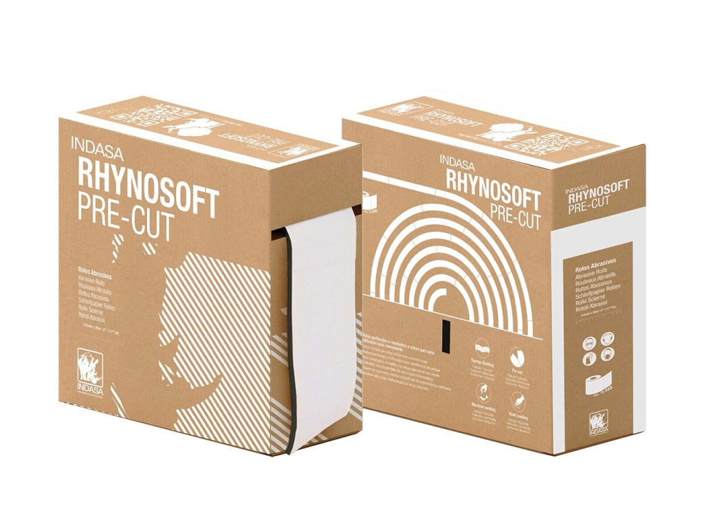 Das RhynoSoft Schleifpapier verbindet die Vorteile von klassischem Schleifpapier mit flexibler Rückseite aus Schaumstoff, was eine gleichmäßigere Druckverteilung ermöglicht – besonders nützlich auf gekrümmten oder unebenen Oberflächen. Die Rolle hat eine Länge von 25 m und eine Breite von 115 mm. Wahlweise wird das Papier in den Körnungen 100, 120, 150 oder 180 angeboten.