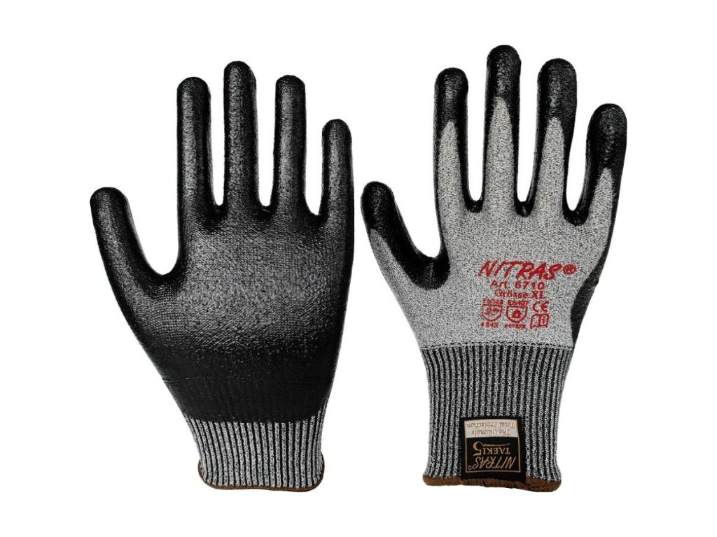 Der Nitras TAEKI Schnittschutz-Handschuh in schwarzer Ausführung überzeugt durch eine ausgewogene Kombination aus Schutz, Grip und Komfort. Das elegante Design aus grauer Strickfaser mit schwarzer Nitrilbeschichtung auf Innenhand und Fingerkuppen sorgt für Sicherheit und Funktionalität gleichermaßen.