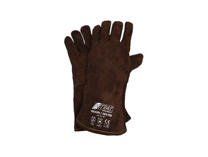 Die Schweißerhandschuhe SAFE PRO von Nitras bestehen aus braunem Spaltleder, sind innen voll gefüttert, mit Kevlar-Nähten verstärkt, ca. 35 cm lang und bieten Schutz gegen...