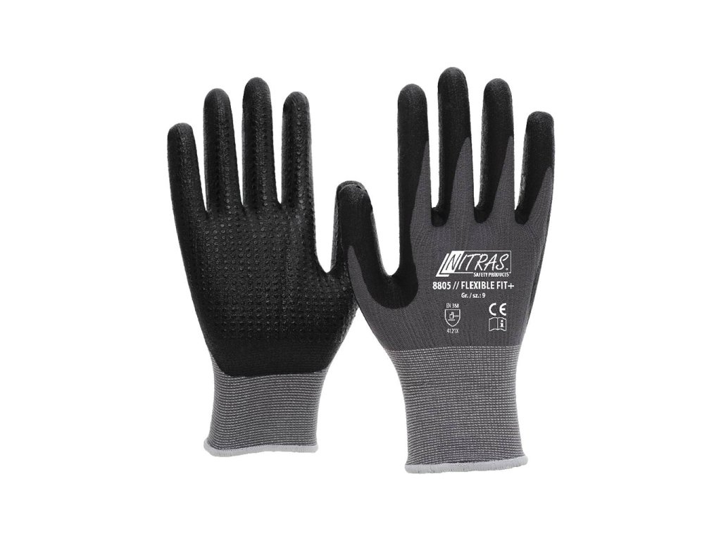 Die Nitras FLEXIBLE FIT+ Noppen-Strickhandschuhe wurden speziell für Anwendungen entwickelt, bei denen griffiges Handling und präzise Bewegungen gefragt sind. Der graue Spezial-Stretch-Strick passt sich komfortabel der Handform an, während die Nitril-Noppenbeschichtung auf Innenhand und Fingerkuppen gezielt für hohe Rutschhemmung sorgt. Die Kombination aus Flexibilität und deutlichem Grip macht diese Handschuhe optimal für Montage, Verpackung, Logistik oder feinmechanische Arbeit.