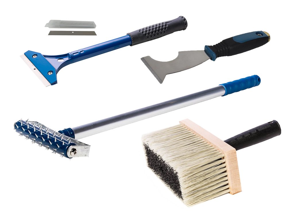 Komplettausstattung – alles, was zum Ablösen einer Tapete nötig ist