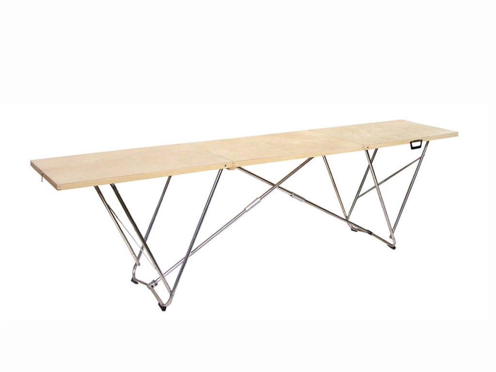 Der 3-teilige Tapeziertisch aus Aluminium (300 × 60 cm) lässt sich einzeln aufstellen, ist höhenverstellbar (76–94 cm) und dank seiner leichte Konstruktion (10 kg) besonders...