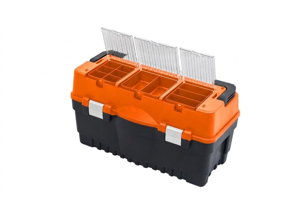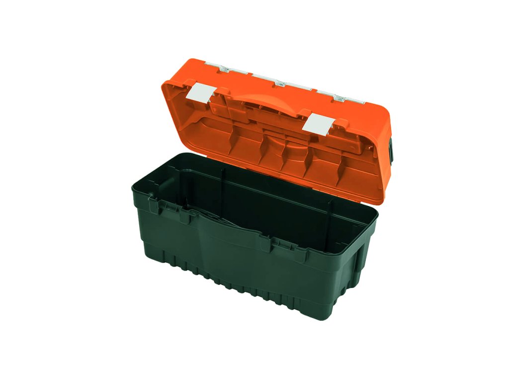 Der Werkzeugkoffer PROFI 700 ist ein robuster Kunststoffkoffer mit Alu-Tragegriff und Alu-Verschlüssen, der umfassenden Stauraum bietet. Mit Außenmaßen von 595 × 289 × 328 mm eignet er sich ideal für Werkstatt, Baustelle und mobilen Einsatz.