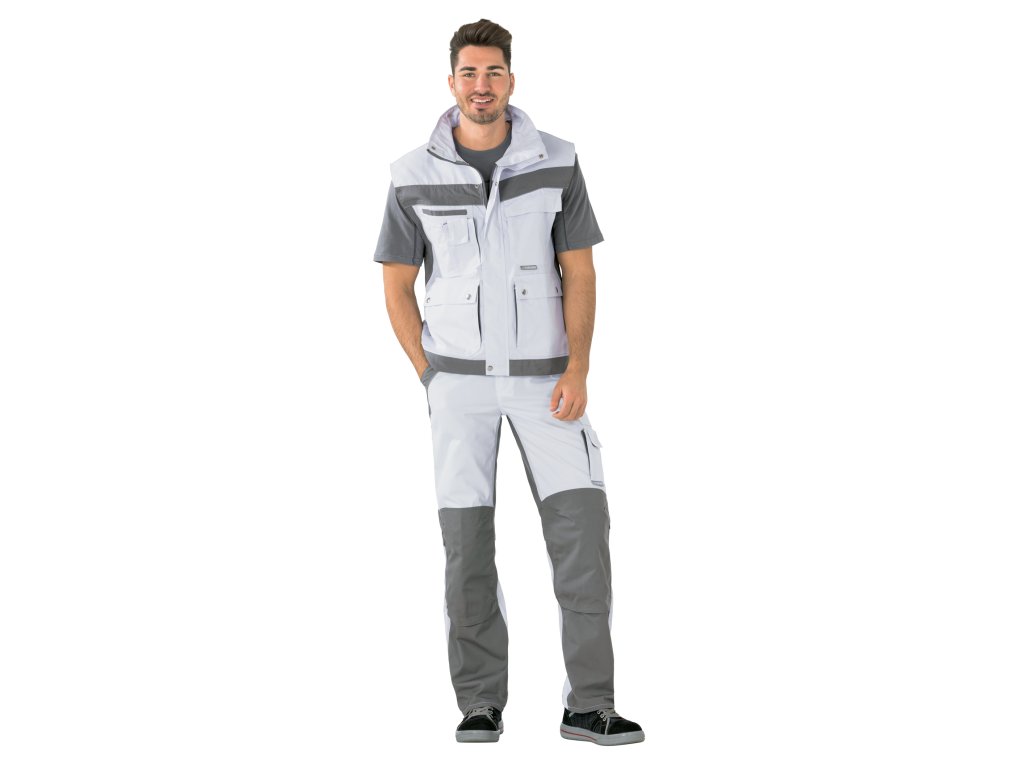 Die Arbeitsweste Plaline von Planam kombiniert robuste Funktionalität mit praktischem Komfort. Das hochwertige Canvas-Gewebe bietet Langlebigkeit und Atmungsaktivität, ideal für den täglichen Einsatz im Handwerk. Der verdeckte Frontreißverschluss sorgt für minimalistisches, sauberes Design, während die Kombination aus Seitentaschen, Brust- und integrierter Handytasche viel Platz für Werkzeuge und persönliche Gegenstände bietet. Die weiß-grau Farbgebung verleiht einen modernen, professionellen Look.
