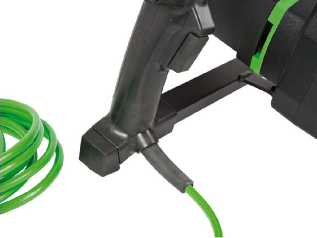 Die gegenläufigen Quirls sorgen für ein rückdrehmomentfreies Arbeiten, was Kraft und Zeit spart. Die Kombination aus staubgeschütztem Schalter, Sanftanlauf, Temperaturüberwachung, stufenloser Drehzahlvorwahl und -konstanthaltung ermöglicht eine präzise Anpassung an das Material. Der ergonomische Metallrahmengriff, die Dämpfungs- und Schutzelemente sowie die Labyrinth-Schutzkappe bieten zusätzlichen Komfort und Schutz – selbst unter rauen Baustellenbedingungen.